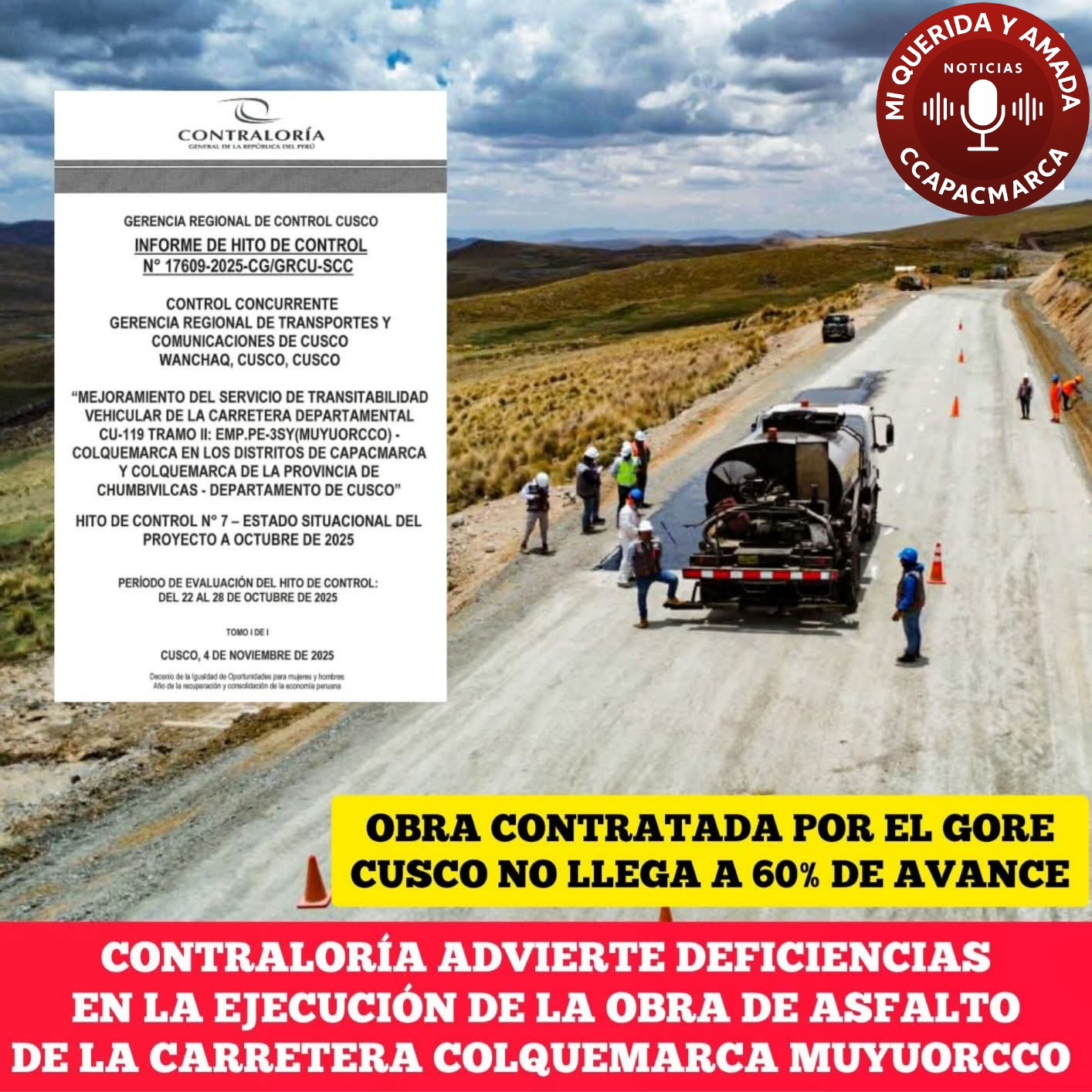 🚨🛣️ CONTRALORÍA REVELA GRAVES FALENCIAS EN MEGAOBRA ASFÁLTICA COLQUEMARCA – MUYUORCCO, VALORIZADA EN S/ 261 MILLONES